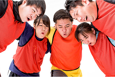 アイデア・チームワーク!運動会は部署や役職が違う人など、普段は関わりのない人ともコミュニケーションを取る良い機会です。作戦立案から実際の競技を通して得られる一体感は、チームビルディング研修として高い効果があります。