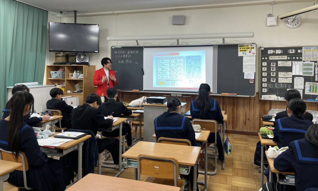 2025年11月、奈良県・香芝市立香芝北中学校にて、キャリア教育の一環として、運動会屋 中日本・西日本エリアマネージャーの長岡啓太が、中学2年生に向けて特別授業を行いました。